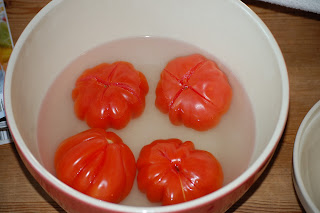 De koude tomatensaus komt uit ‘voor altijd zomer’ van Nigella. Voor een pittige bite voeg ik in chilipeper gebakken garnalen toe. Nou moet ik wel zeggen dat dit gerecht valt of staat met de kwaliteit van de tomaten die je gebruikt. Zelf neem ik altijd deze mooie ‘coeur de boeuf’-tomaten: