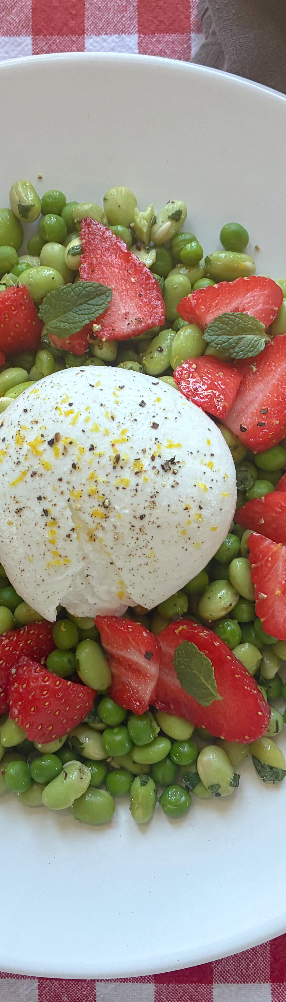 Lente bonensalade met Burrata en aardbei